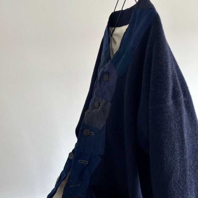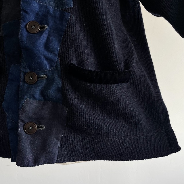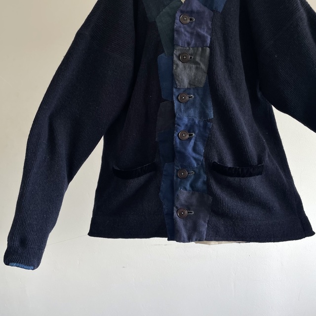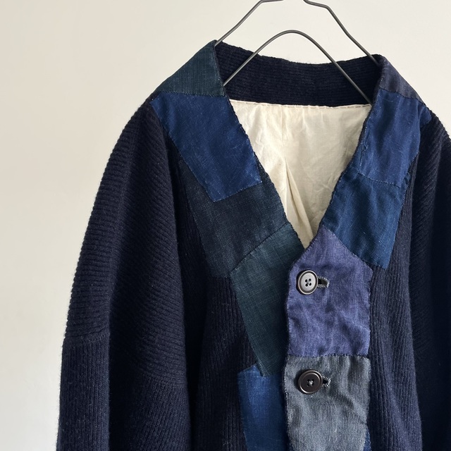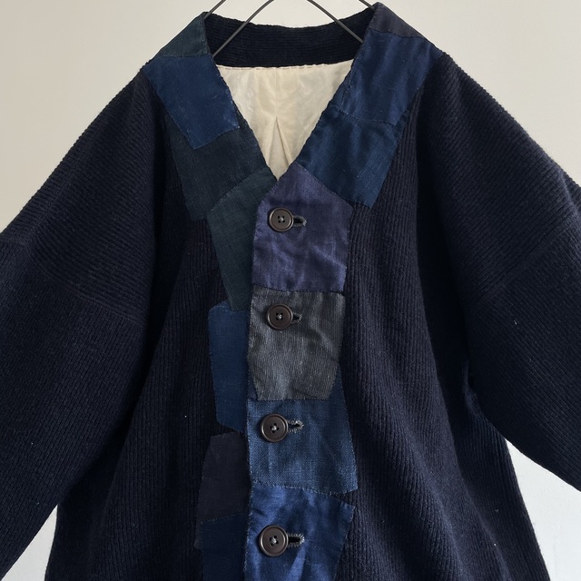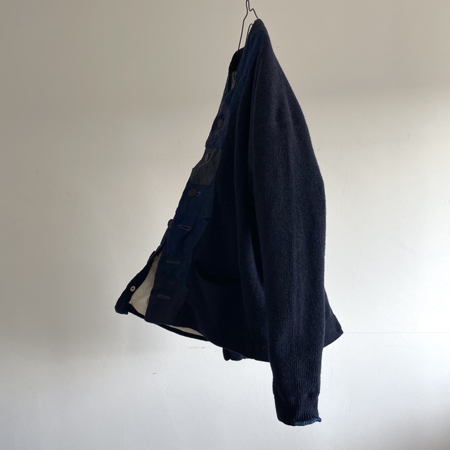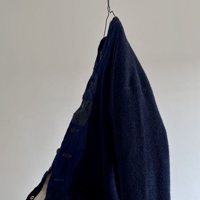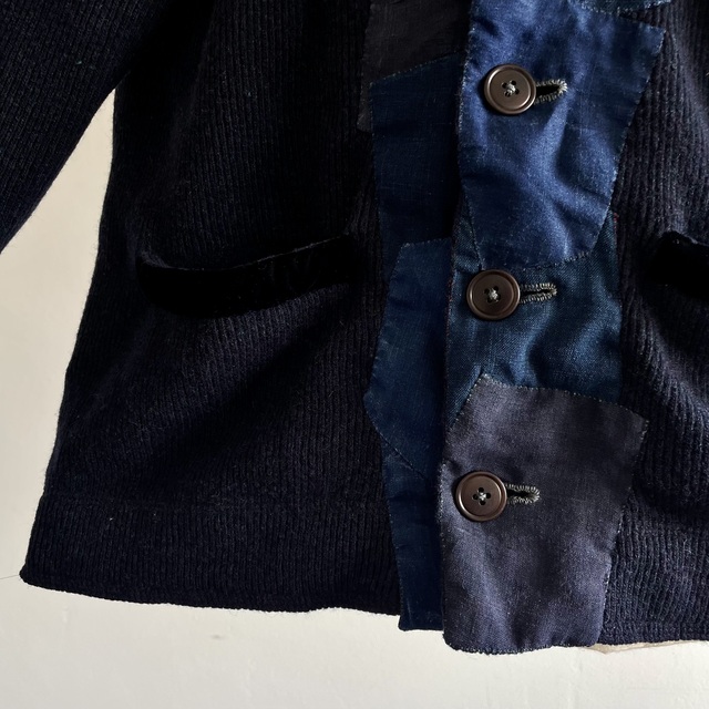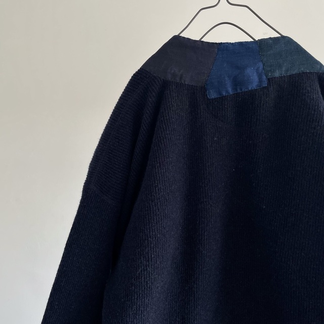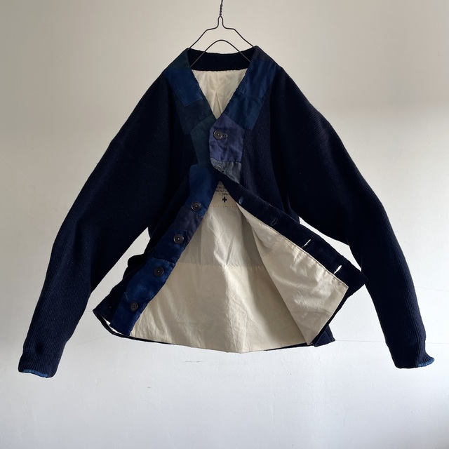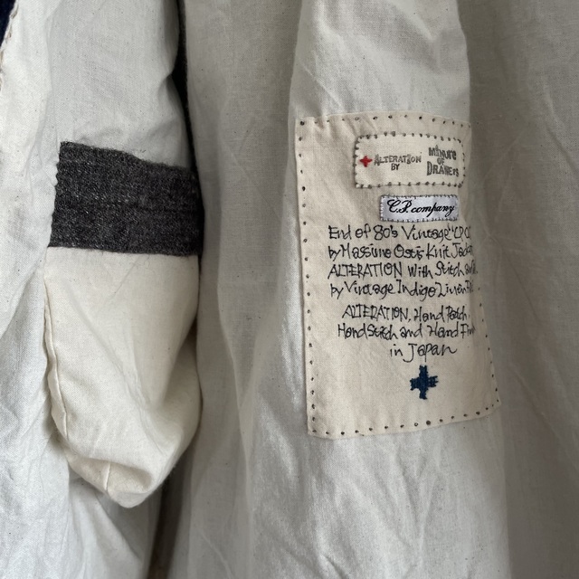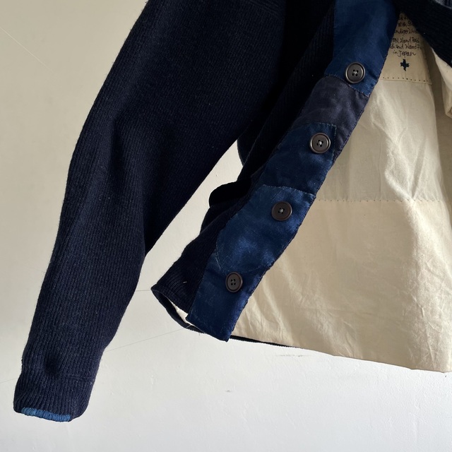 End of 80’s Vintage “CP COMPANY by Massimo Osti ” Knit Jacket ALTERATION with Hand Stitch and Patch by Vintage Indigo Linen Fabric