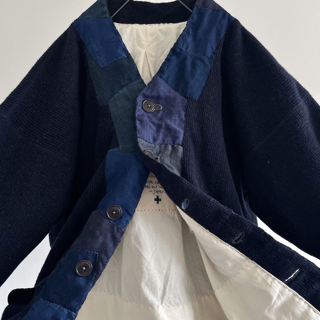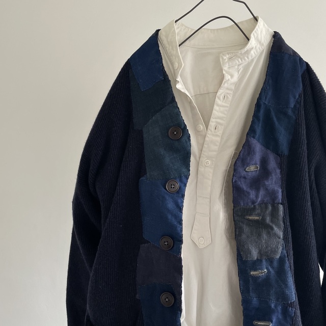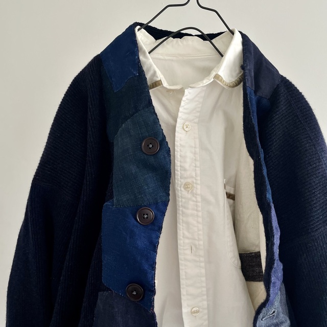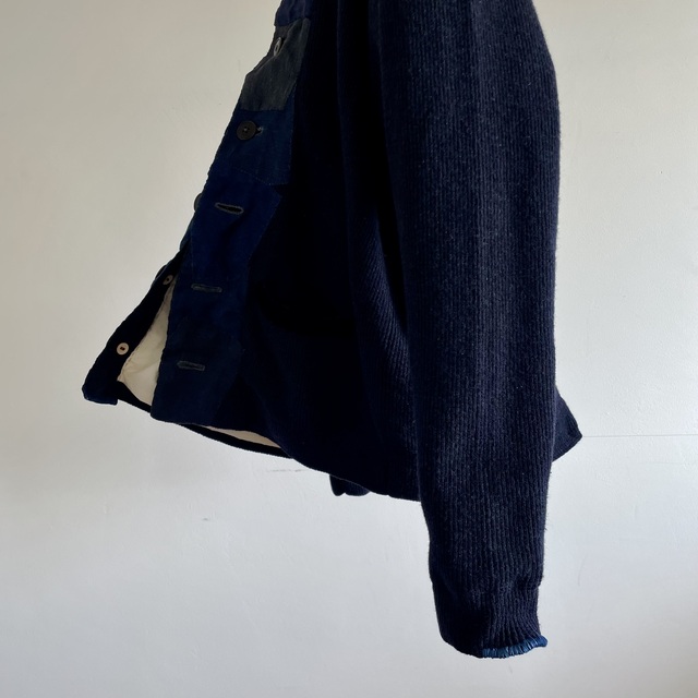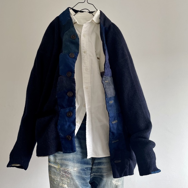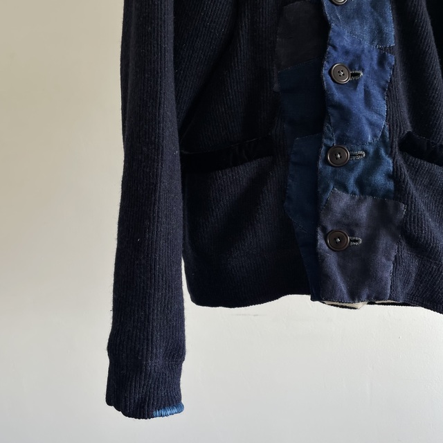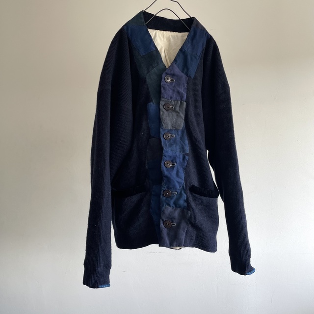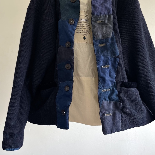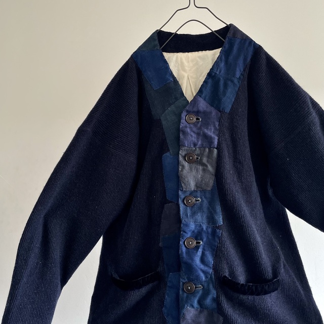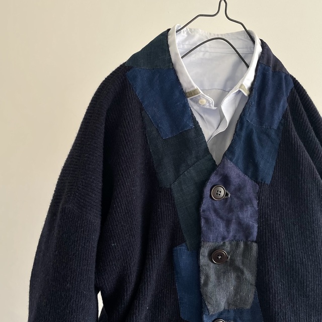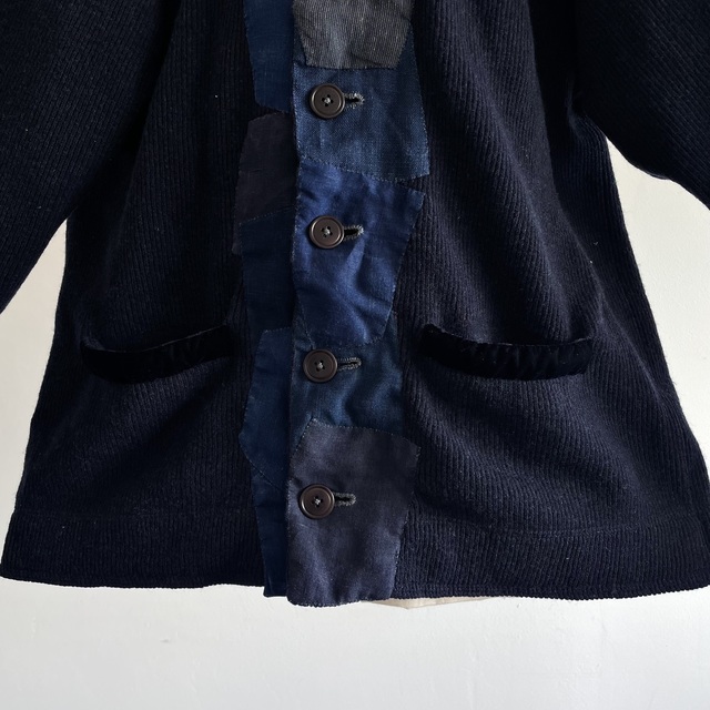 End of 80’s Vintage “CP COMPANY by Massimo Osti ” Knit Jacket ALTERATION with Hand Stitch and Patch by Vintage Indigo Linen Fabric