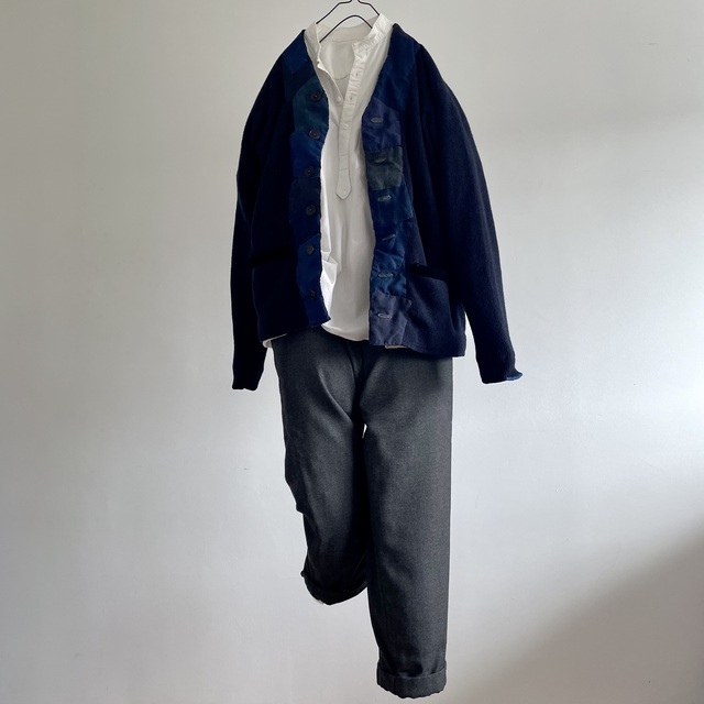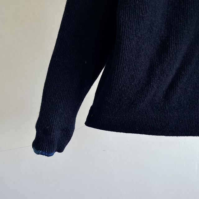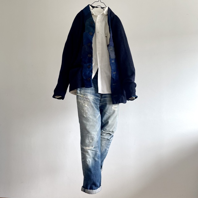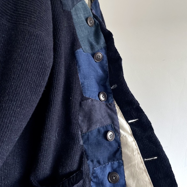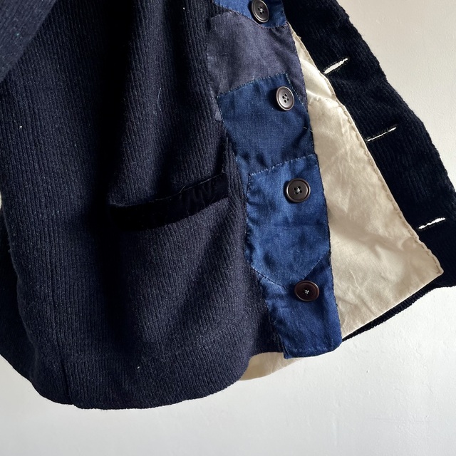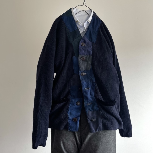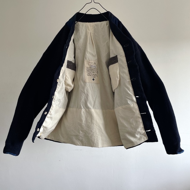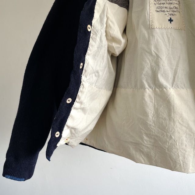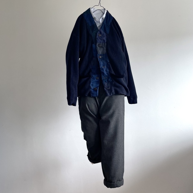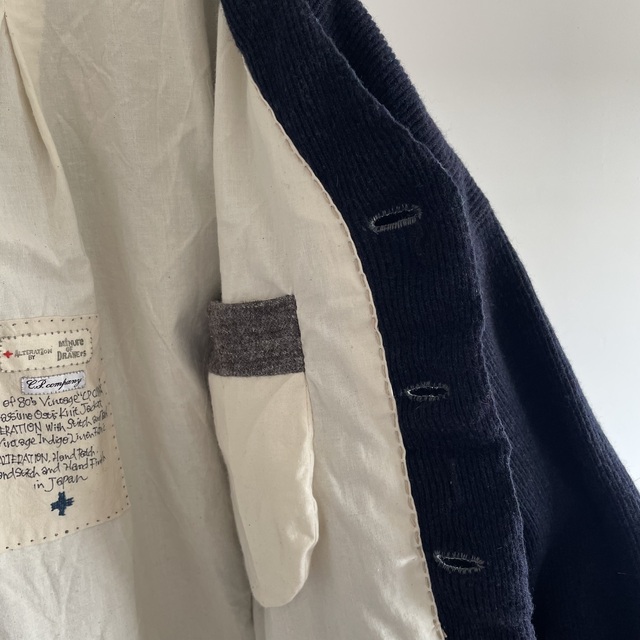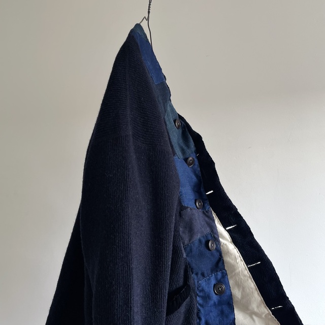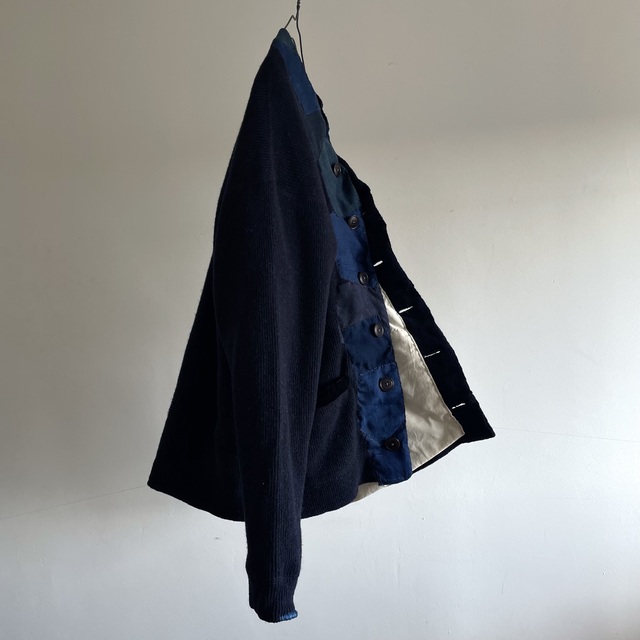 End of 80’s Vintage “CP COMPANY by Massimo Osti ” Knit Jacket ALTERATION with Hand Stitch and Patch by Vintage Indigo Linen Fabric