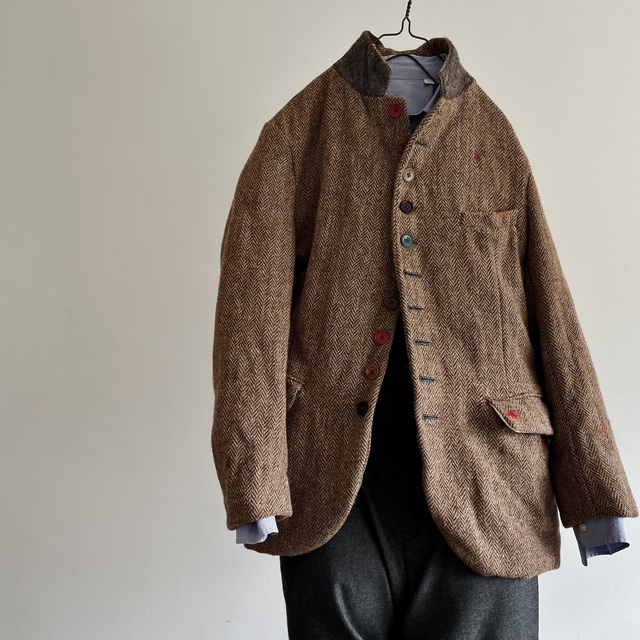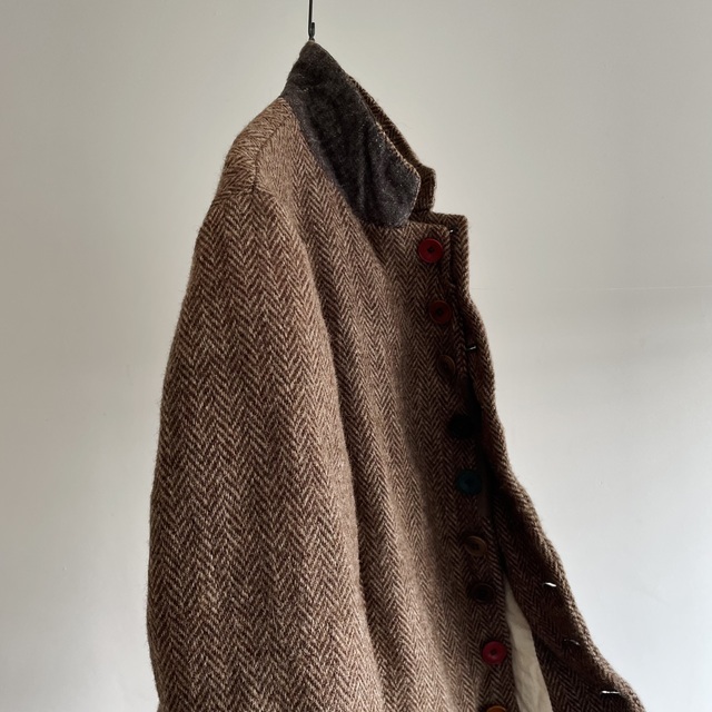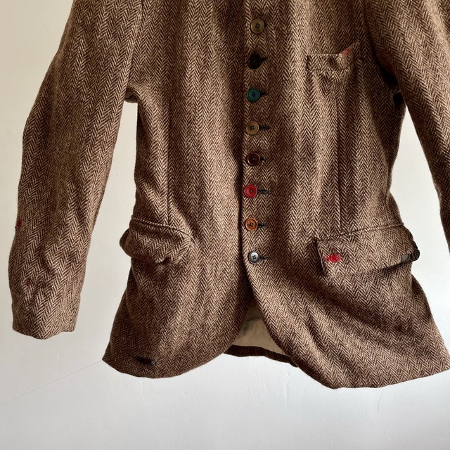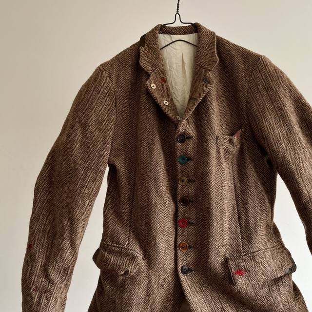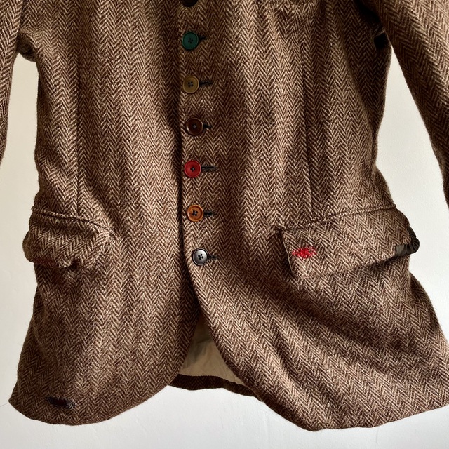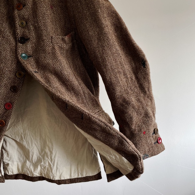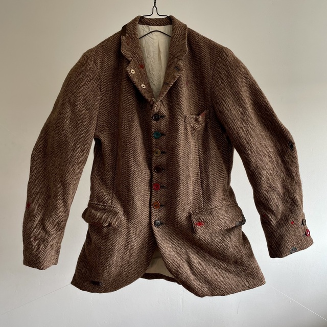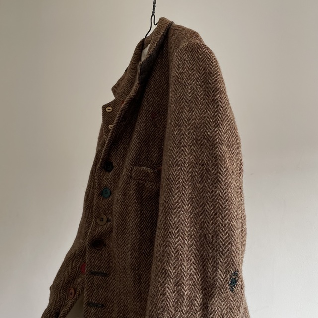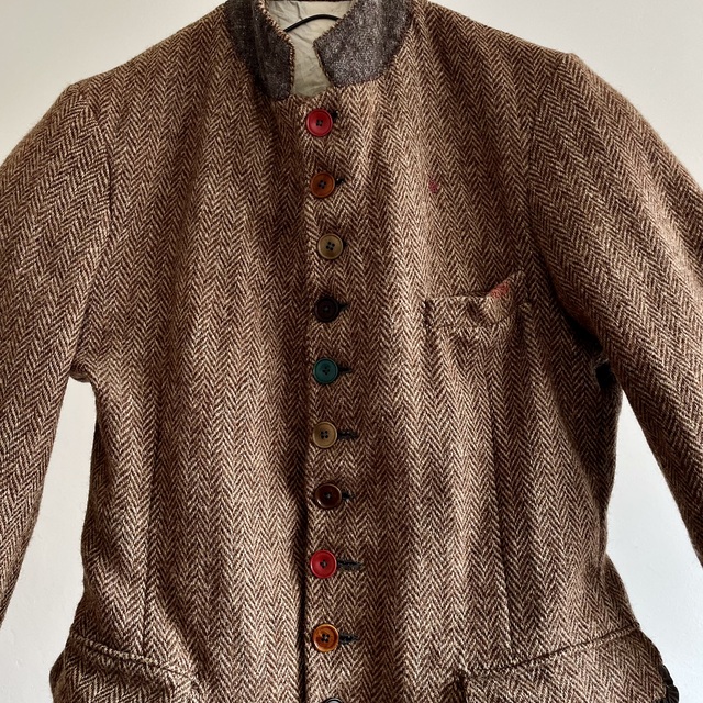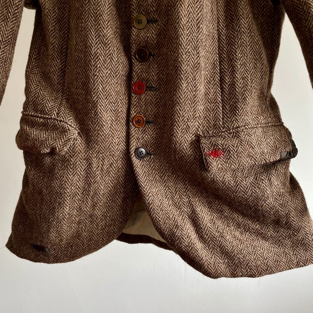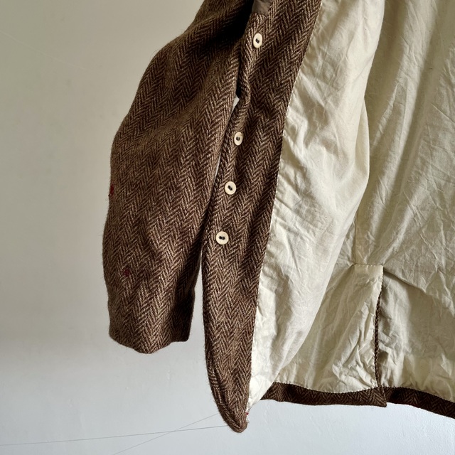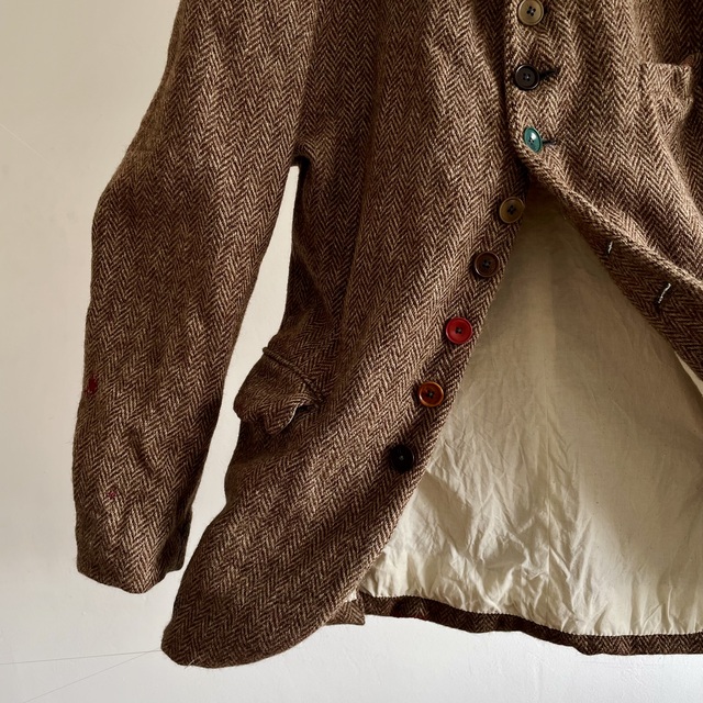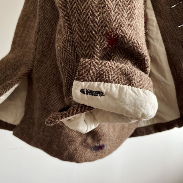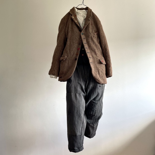 織られた生地に残っていた原毛に含まれる油分が、時間の経過と共に抜け変化した少しパサついた触感は、ヴィンテージのツイードだけが持ち、時間を経なければ手に入らない物。