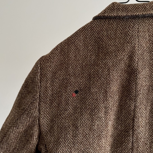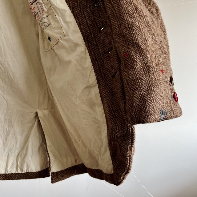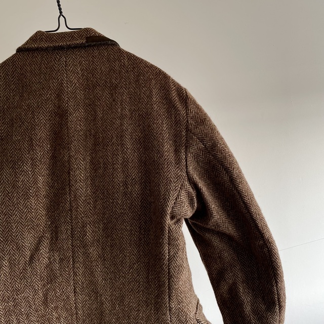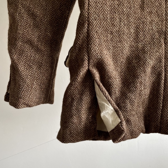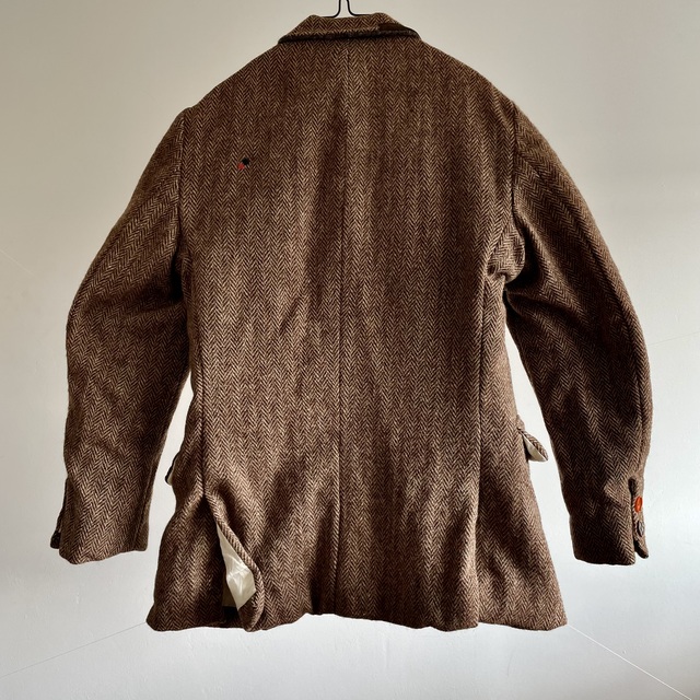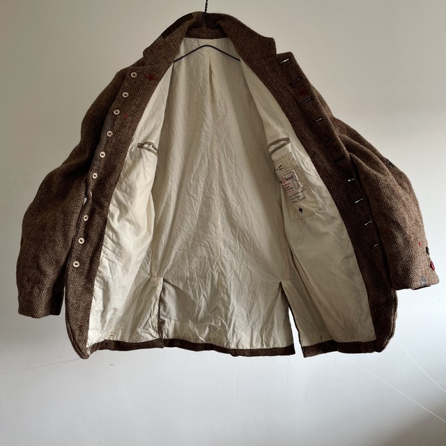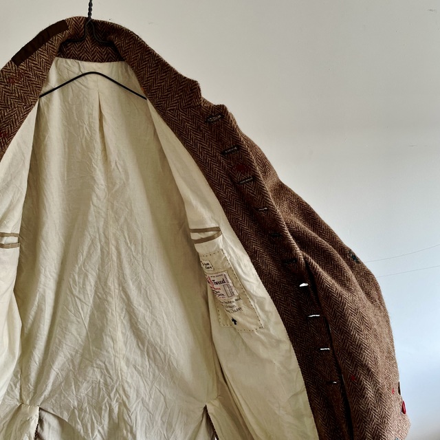 残されたラベルでわかるように、このジャケットは生地が輸出され米国で仕立てられた物。ハリスツイードは他のツイードやタータンなどの毛織物やアランニットなど50年代以降当時の英国が外貨を稼ぐ重要な輸出品目の一つ。
