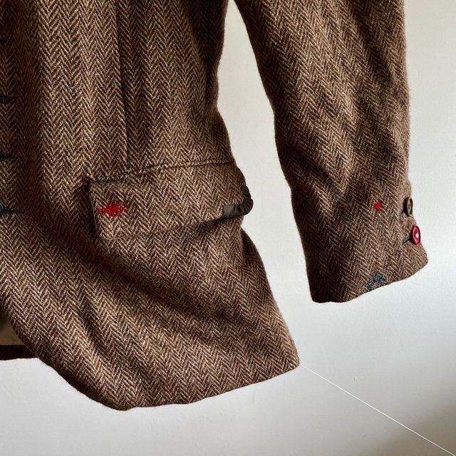 例えばこのジャケットの生地のテクスチャー。今から50年も前の紡績や製織などの生地作り、生育環境や餌が今と異なる羊毛自体の質の違い、そういった点は、今では望むべくもなく再現もできないものなのだろうと思います。