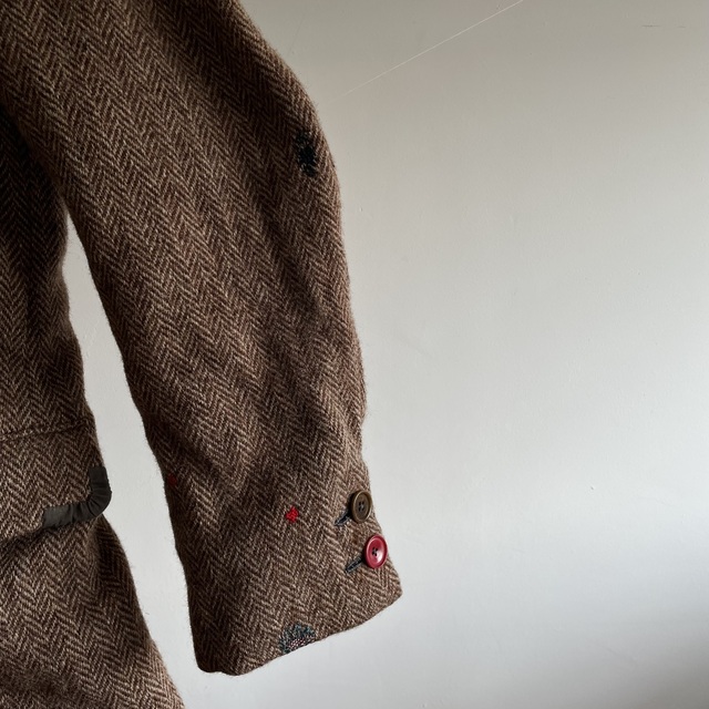 袖が太くて肩にはバツンとパッドがあって、着丈がだらりと長すぎて、なぜか重くくすんだ雰囲気で、裏地がシミだらけでポケットにはいつのものかわからない埃が詰まってて、ちょっと不潔で古臭くてサイズが合わなくてもそれがヴィンテージなんだしそれで良い(それが良い)と思われる人には全く余計な仕事の数々。