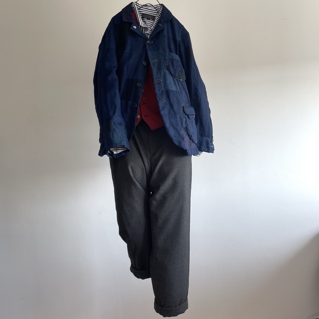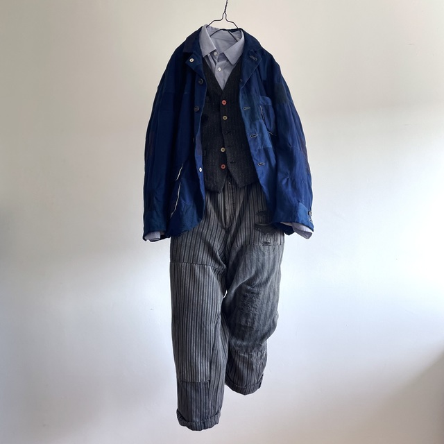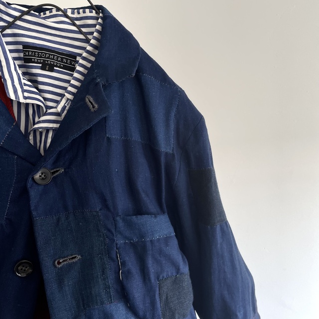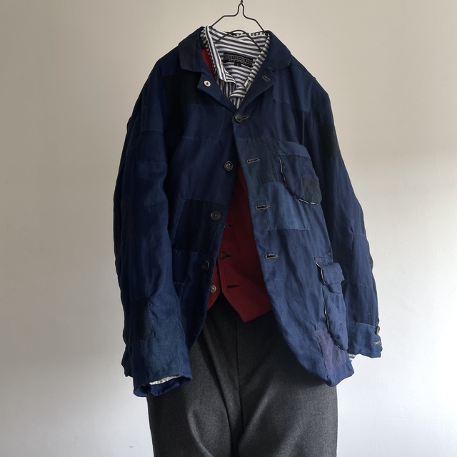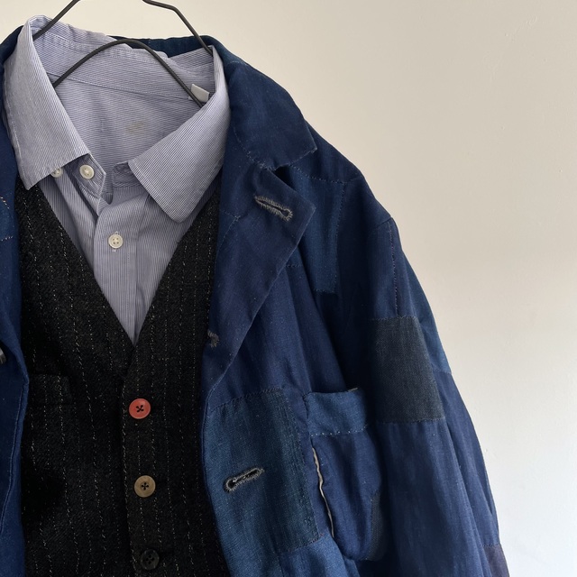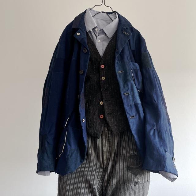 20世紀初頭~中期の、数種類のフランスのインディゴ染めのvilletteを、組み合わせ手縫いでpatchしたジャケット。