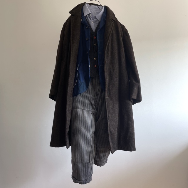Maquignonの衣服に良く使われていた、細いリネン糸で織った生地をインディゴで染めたvilletteと呼ばれる生地。フランスで栽培し、繊維として加工され、糸として紡績され、手動織機で織られたリネン。Maquignonと言う呼び名は、牧畜業(馬や牛の放牧や仲買い人)や家畜・食肉市場に携わった人々のことです。オランダ語のmakelare(仲介や交渉)から派生した名称で、当初は馬のディーラーを指していましたが、やがて馬主や飼育業者までを指す言葉となっていったようです。
