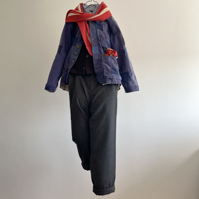 フランスのワークウェアは、テーラーワークを基本としたパターンメイクと縫製を基本とし、「 ファッション 」と対極の位置にあるはずの「労働着」を超えた存在です。1950年代のフランスのワークジャケットをAlterationした1着です。