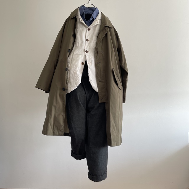 This jacket is made of antique linen woven on several types of French manual looms from the end of the 19th century to the beginning of the 20th century, and patched by hand in combination. The loose silhouette with a generous volume of fabric makes this jacket suitable for the warm and breezy season.
