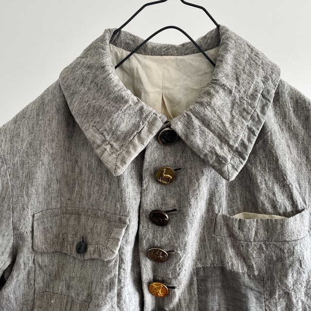 Vintage French “Melange Gris de Travaille” Linen Fabric Made Hunting Jacket