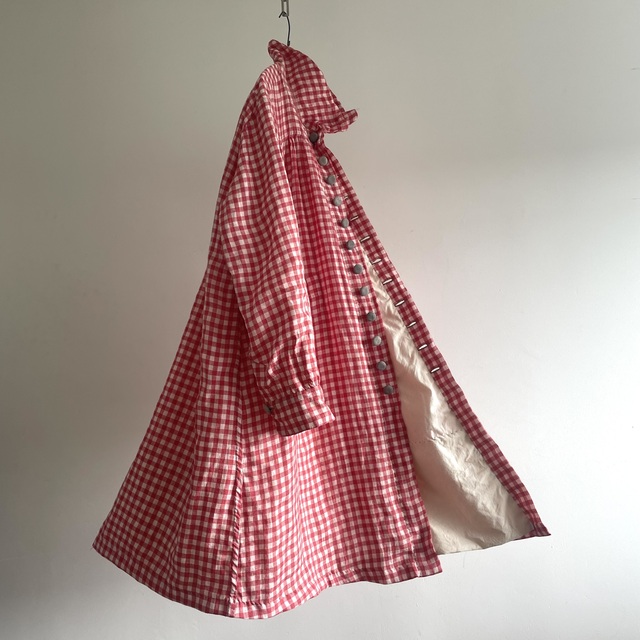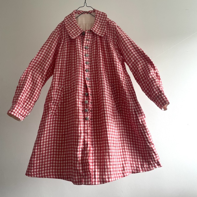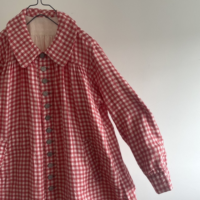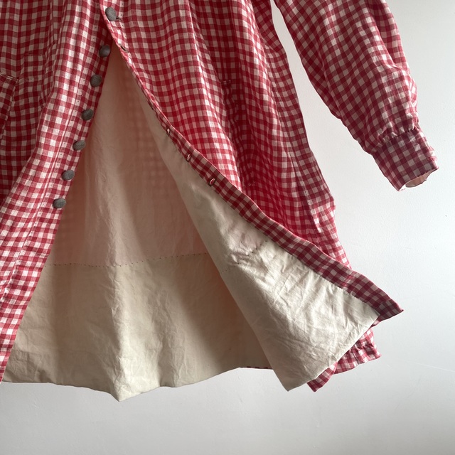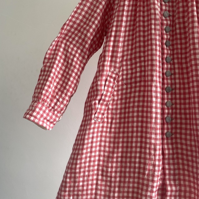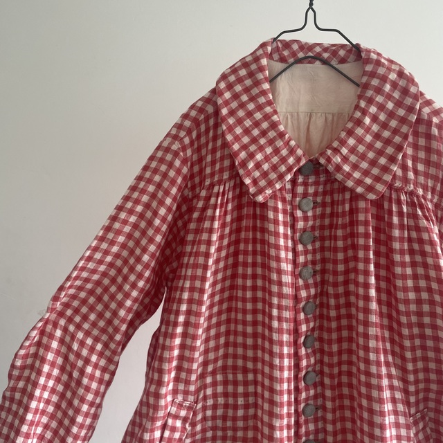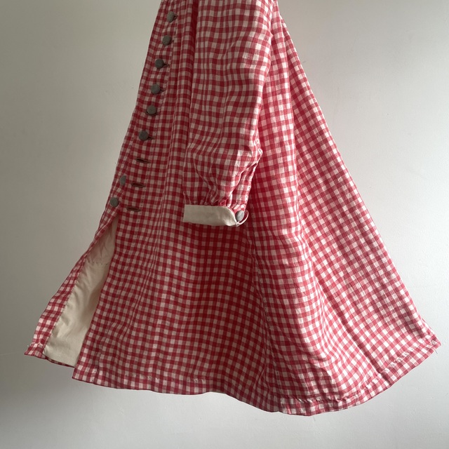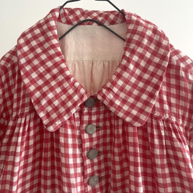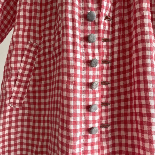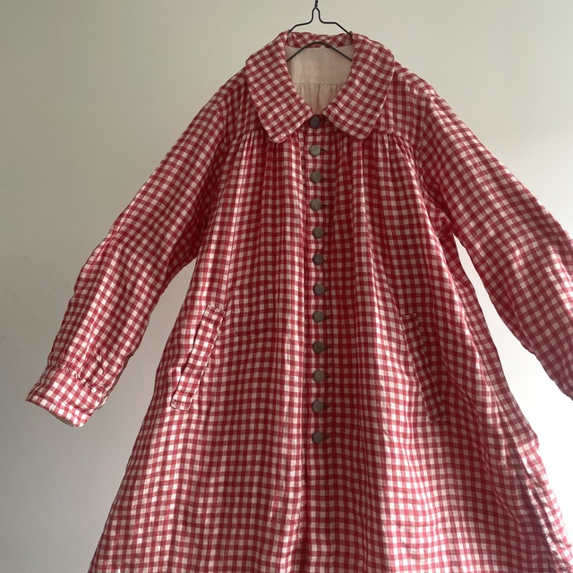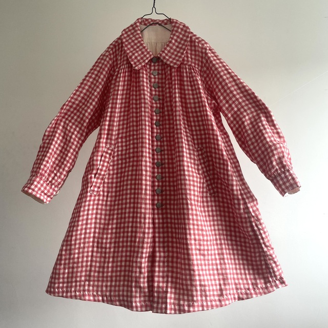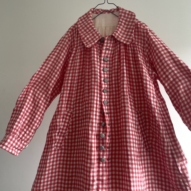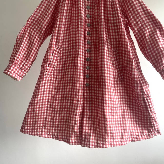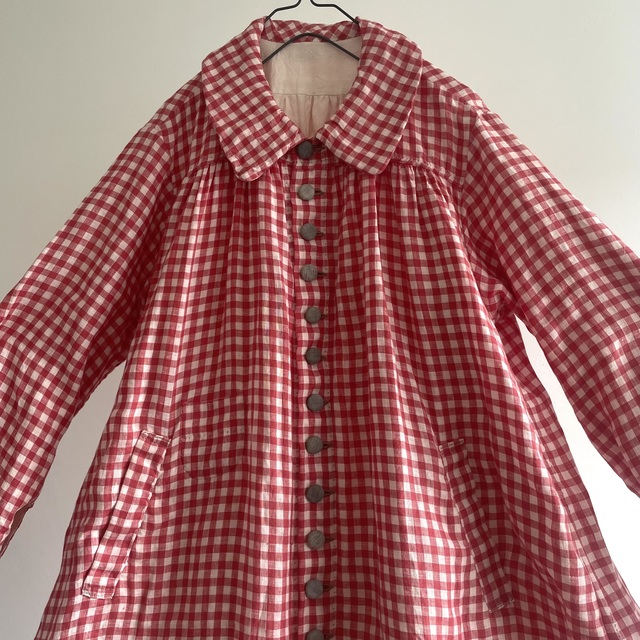 様々な色の組み合わせの中でも、とりわけフランスらしさが感じられるオフホワイトと赤のギンガムチェック。この生地を見ると、ギンガムの発祥はマレー語の「Genggang」ではなく、フランス北西部、ブルターニュのイギリス海峡に臨む田舎町Guingampなのだという説に1票を投じたくなります。