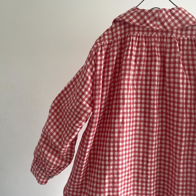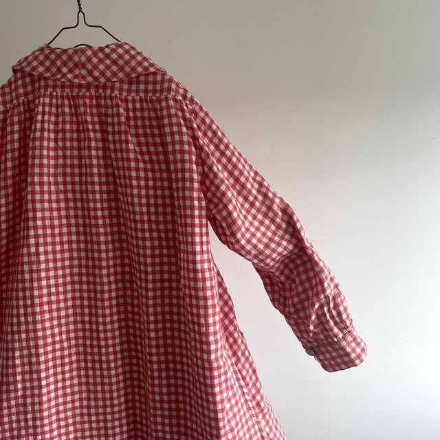 柔らかなフォルムは、袖口やヨーク周りやカフスにとられたギャザーの作り出す柔らかさ。たたみ込まれた膨らみが印象を丸くします。