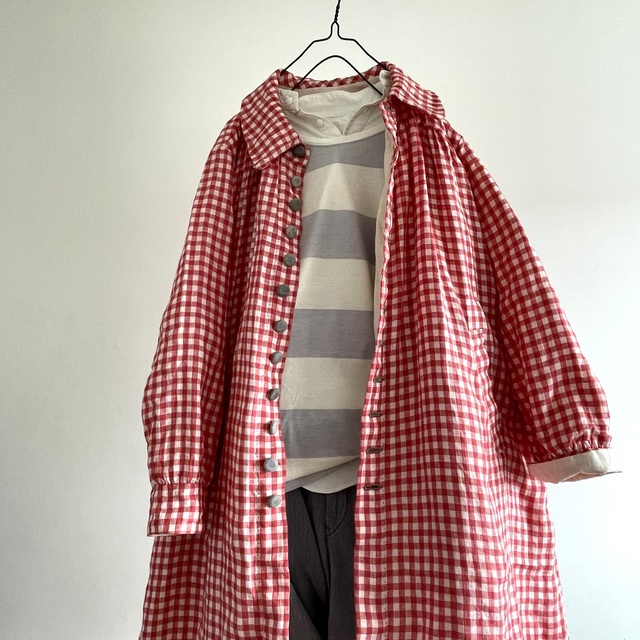 Among the various color combinations, the off-white and red gingham check is particularly French. Looking at this fabric, I would like to cast my vote for the theory that gingham originated not from the Malay word “Genggang” but from Guingamp, a rural town in Brittany, northwest of France, facing the English Channel.