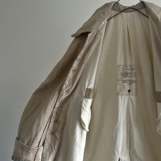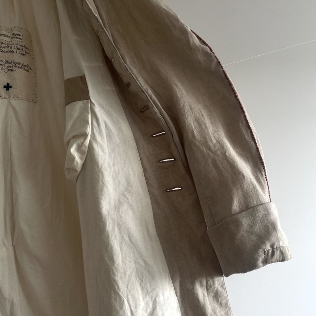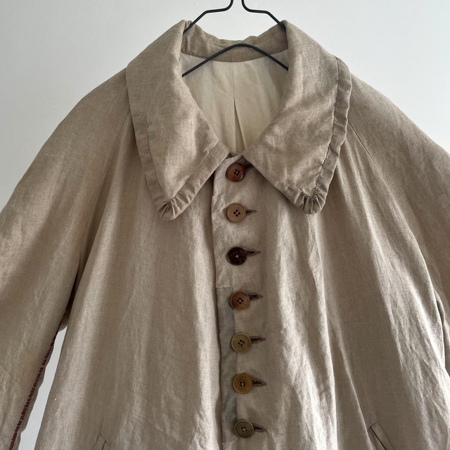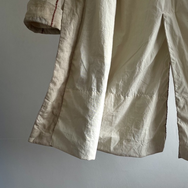 Vintage Old Ecru Linen Fabric Made ALTERATION Hand Sewn Over Seam Stitch Raglan-sleeve Coat